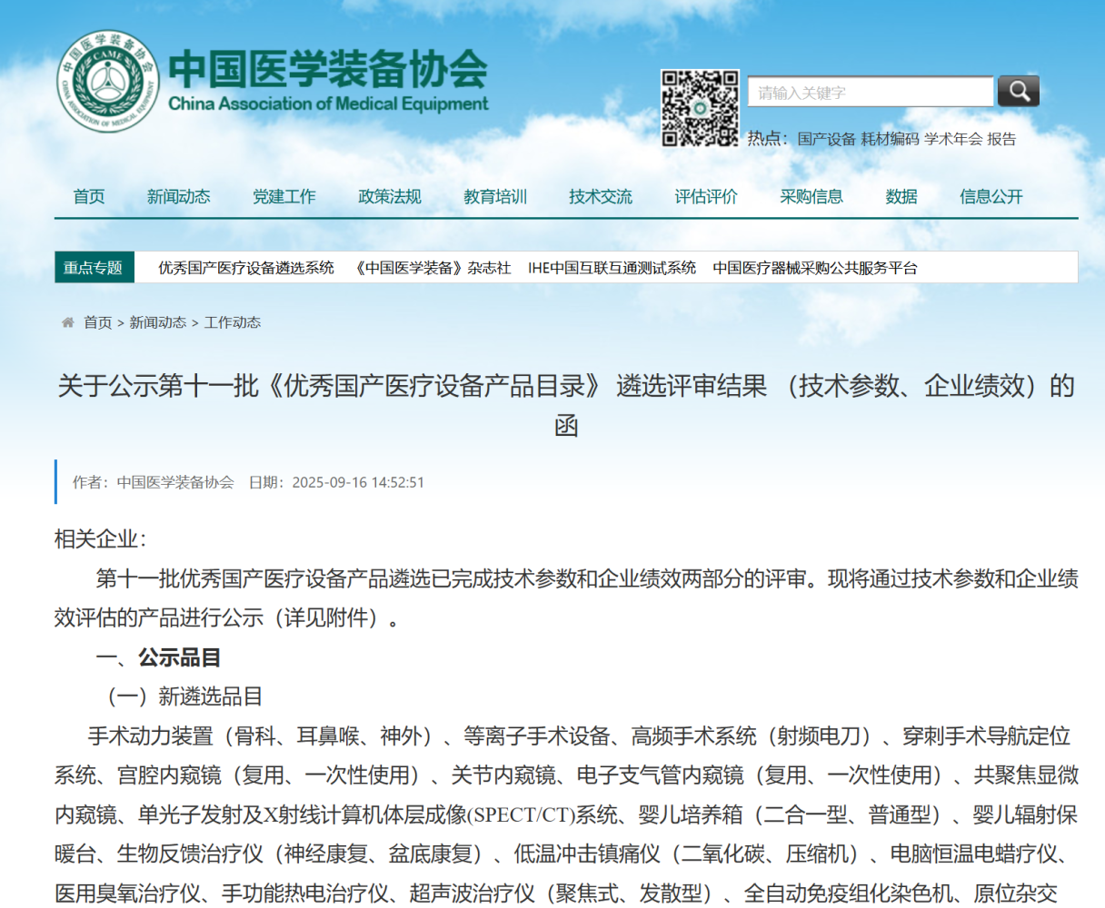 The National Excellent Domestic Medical Equipment Catalog is strictly selected by authoritative institutions and undergoes multi-level review across four key dimensions: technological advancement, clinical applicability, safety and reliability, and cost-effectiveness. It aims to promote high-quality domestic medical equipment to medical institutions at all levels and facilitate the universal access to medical resources.