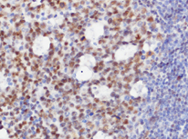 LMO2抗体 是一种靶向造血发育关键蛋白(由LMO2基因编码的含两个LIM结构域的半胱氨酸富集蛋白)的免疫检测工具。该抗体在淋巴瘤诊断中具有重要价值:①作为生发中心相关标志物,与HGAL抗体联合应用可辅助鉴定滤泡性淋巴瘤(FL),尤其对非胃肠道FL的鉴别诊断具有特殊价值;②作为生发中心型弥漫大B细胞淋巴瘤(GC-DLBCL)的特征性标志物;③在结节性边缘区淋巴瘤(NMZL)诊断中,联合CD43、CD23、CD21、BCL6和HGAL等抗体组成的免疫组化组合,可有效区分弥漫性滤泡中心淋巴瘤。LMO2在造血发育中的高度保守性及其在特定淋巴瘤亚型中的特异性表达模式,使其成为血液病理诊断中不可或缺的分子标记。