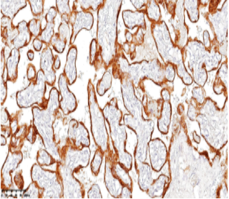 人胎盘催乳素(hPL)抗体 是一种特异性识别胎盘激素hPL(又称绒毛膜生长催乳素,HCS)的检测工具。hPL作为与人生长激素结构功能相似的肽类激素,通过调节母体代谢状态保障胎儿能量供应,其血清水平在妊娠第5周可检出,至34周达到峰值。该抗体能特异性标记绒毛膜癌中的合体滋养层细胞,在罕见睾丸滋养层肿瘤(类似子宫胎盘部位滋养细胞肿瘤)的诊断中具有独特价值——这类纯由中间型滋养细胞构成的肿瘤呈现hPL弥漫强阳性,而β-hCG仅局灶阳性。hPL抗体因此成为滋养层肿瘤病理分型和鉴别诊断的重要标志物。